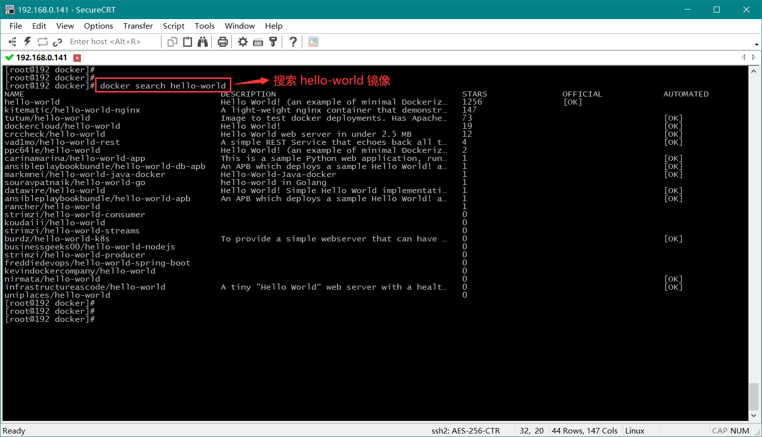 如果你需要从网络中查找需要的镜像,可以通过以下命令搜索: