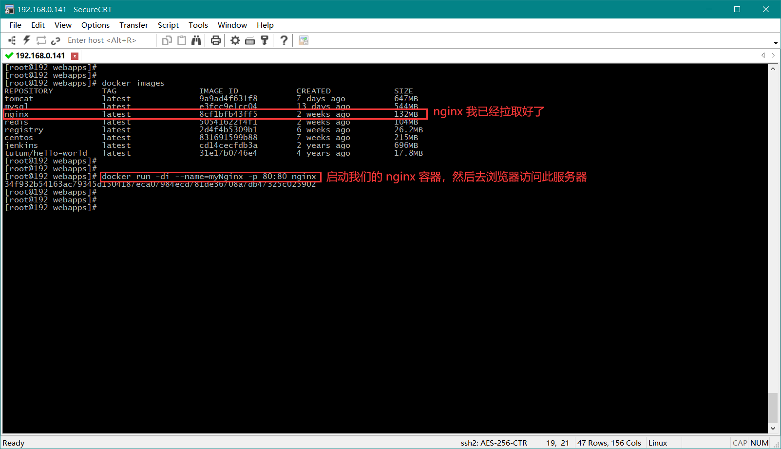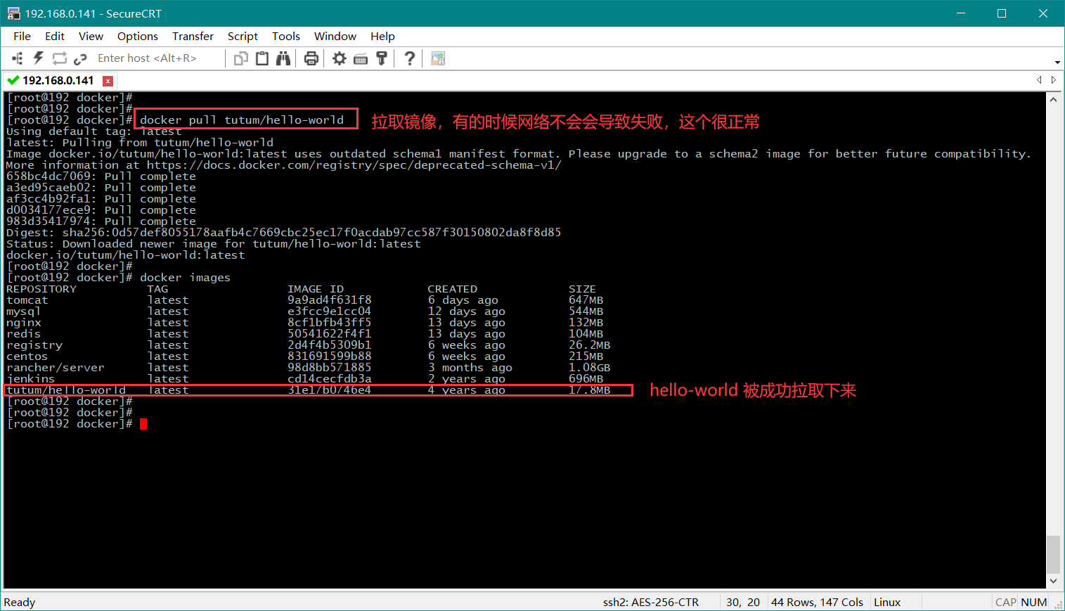 拉取镜像就是从中央仓库中下载镜像到本地,命令如下: