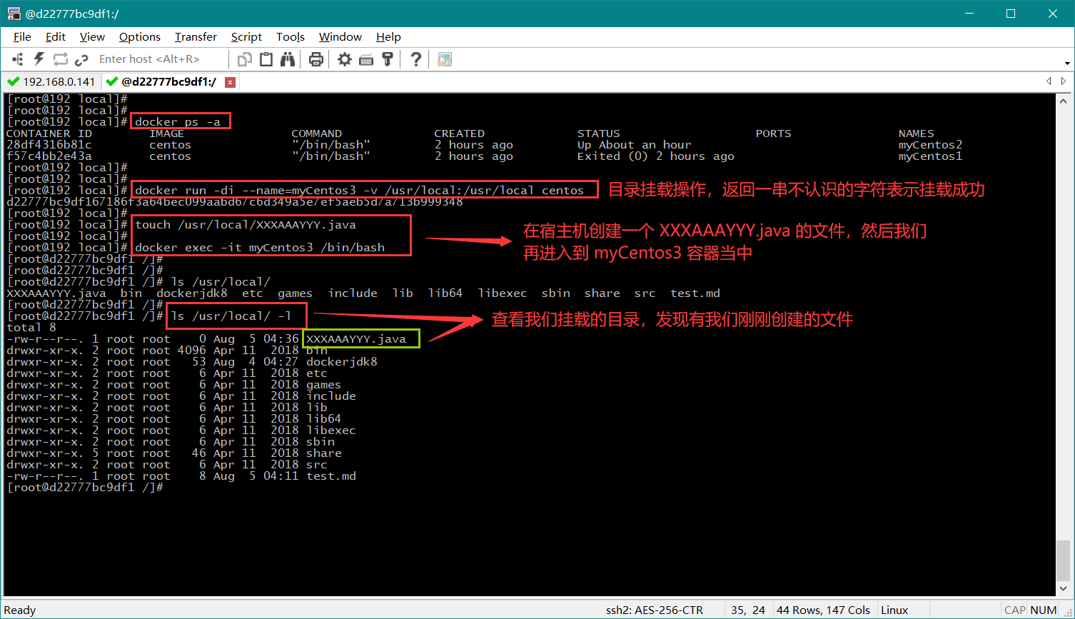 目录挂载: 我们可以在创建容器的时候,将宿主机的目录与容器内的目录进行映射,这样我们就可以通过修改宿主机某个目录的文件从而去影响容器。 具体详情介绍以及操作截图如下: