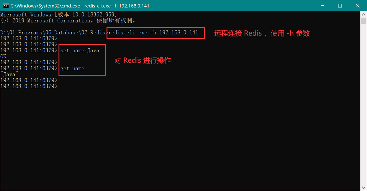 当 Redis 启动好了之后,我们使用客户端 Redis 进行远程连接。 如下图: