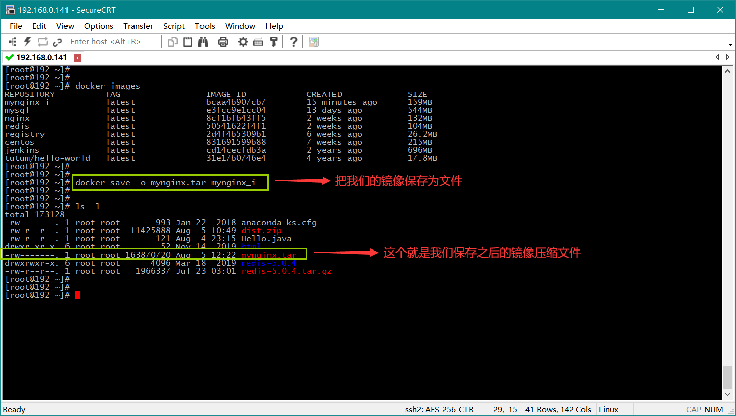 我们可以通过命令将镜像保存为 tar 文件。 操作如下: