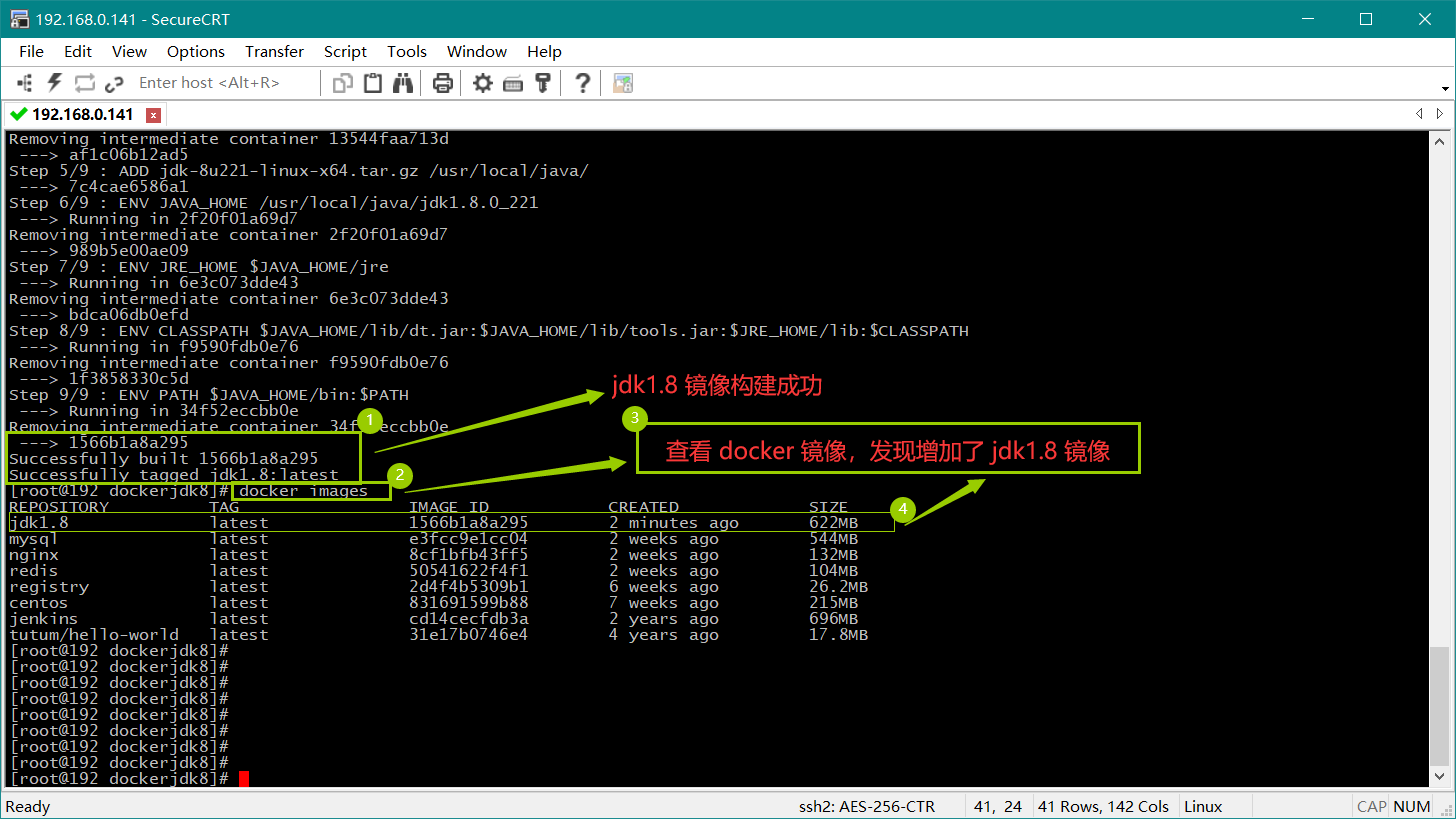 接下来我们使用命令构建镜像。 具体操作及结果如下图: