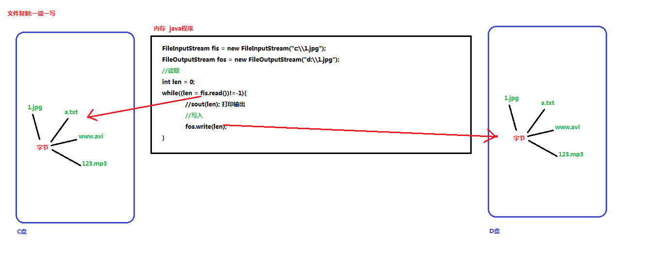 1、虽然参数为 int 类型四个字节,但是只会保留一个字节的信息写出。 2、流操作完毕后,必须释放系统资源,调用 close 方法,千万记得。