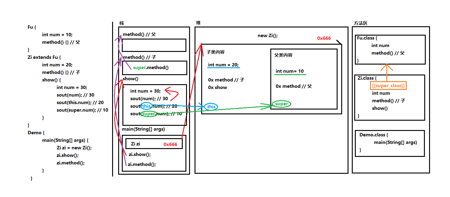 1 2 3 4 5 6 7 8 9 10 11 12 13 14 15 16 17 18 19 20 21 public class ExtendsAndImplementsTest { public static void main (String[] args) { Zi zi = new Zi(); zi.method(); } }