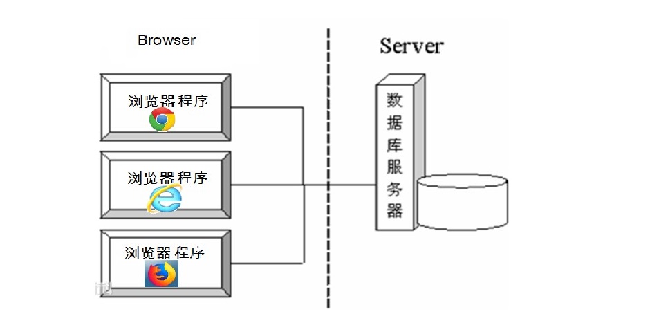 B/S 结构 B/S 结构 全称为 Browser/Server 结构,是指浏览器和服务器结构。常见浏览器有谷歌、火狐等。结构如下图: