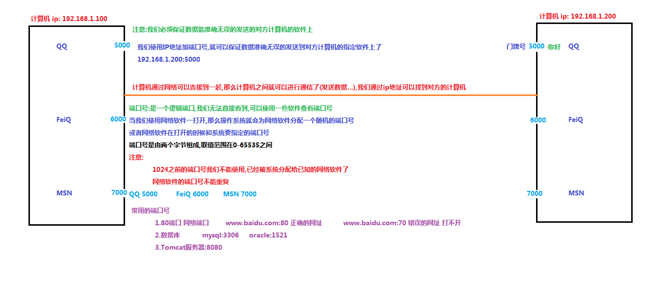 端口号 网络的通信,本质上是两个进程(应用程序)的通信。每台计算机都有很多的进程,那么在网络通信时,如何区分这些进程呢?如果说 IP 地址 可以唯一标识网络中的设备,那么 端口号 就可以唯一标识设备中的进程(应用程序)了。
