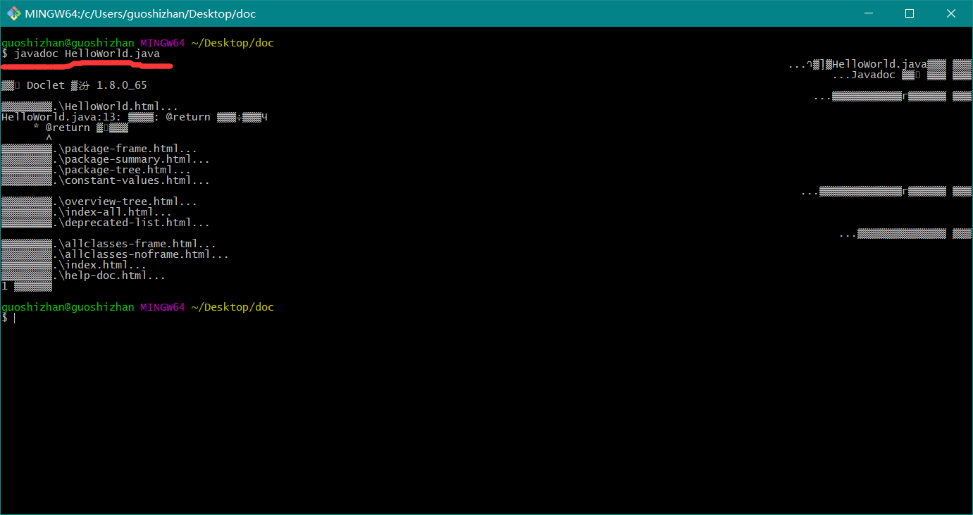 命令行执行 使用 javadoc 命令生成文档,如下图: