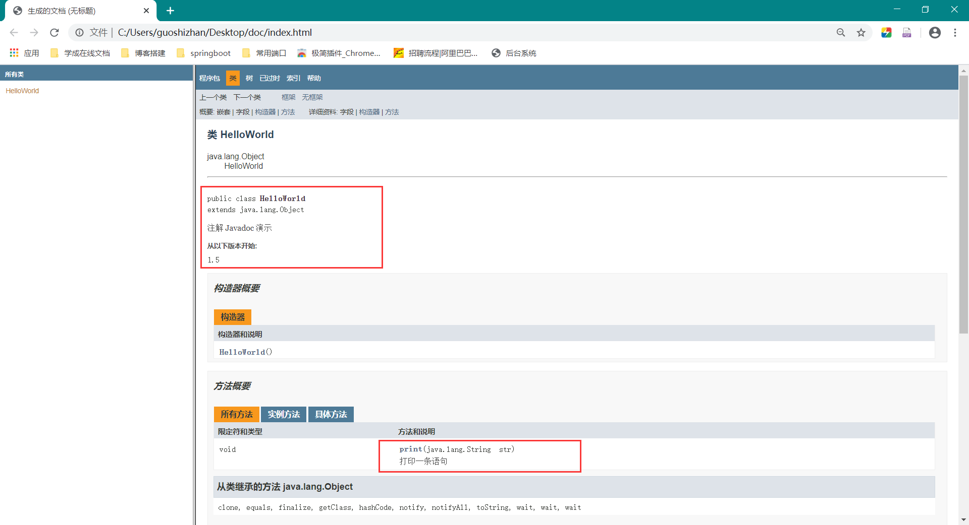 使用注解生成文档 我们经常使用的 api 文档就是使用 注解 生成的, 如下图:
