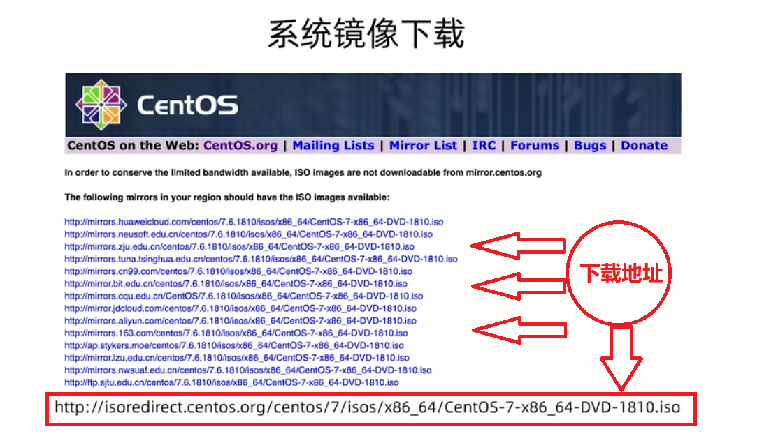 以下是各种 Linux 镜像下载地址 ,选择下载即可。如下图: