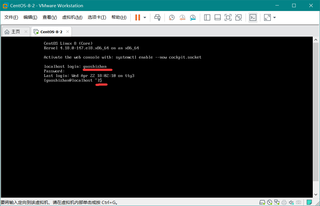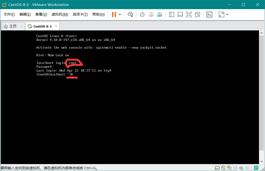 如果是 root 用户 登陆,用户名后面显示的是 "#" ,如下图: