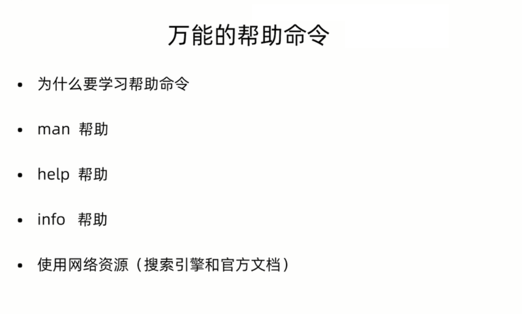为什么要学习帮助命令:Linux 的基本操作是命令行,里面有海量的命令不适合我们死记硬背,所以当我们不知道如何使用一个 Liunx 命令时,我们就可以使用以上的三种帮助命令来获取相关命令介绍,从而学会如何使用该命令。