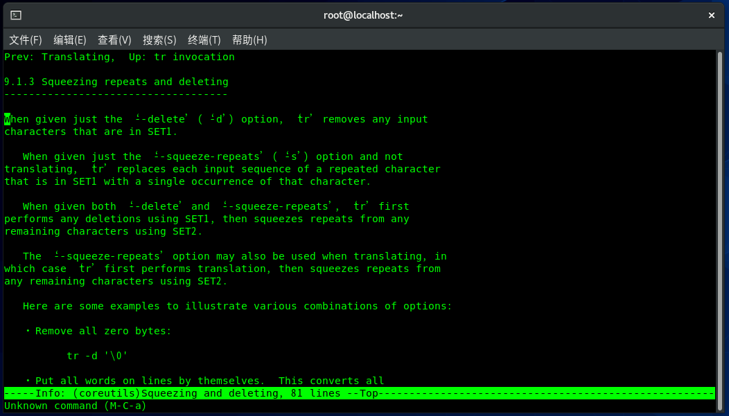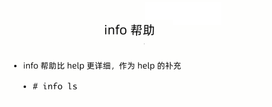 info 帮助命令是英文的,理解优点难度。下图是 ls 的 info 帮助命令: