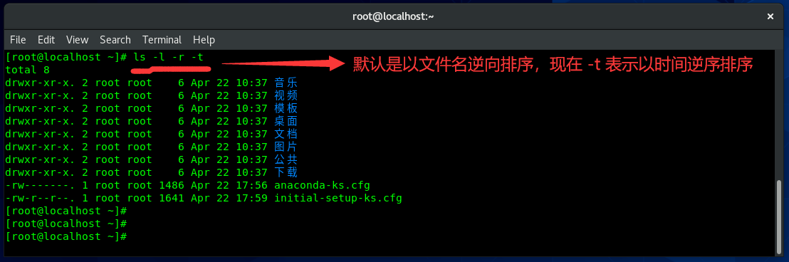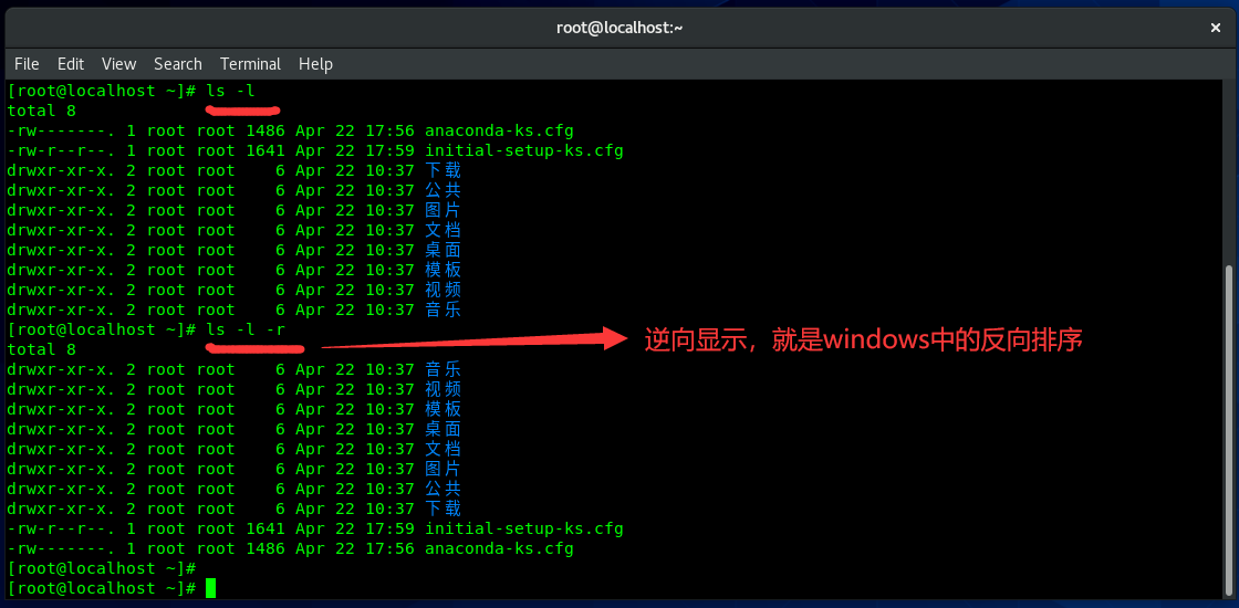 1 | drwxr-xr-x. 2 root root 6 4月 22 10:37 桌面 |