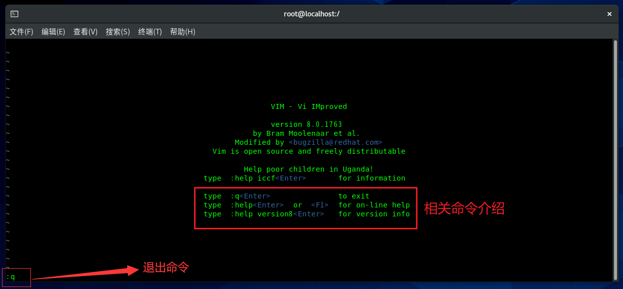 在 Liunx 终端输入 vim ,然后也可以进入到了 vim 模式: