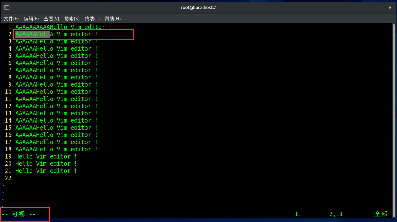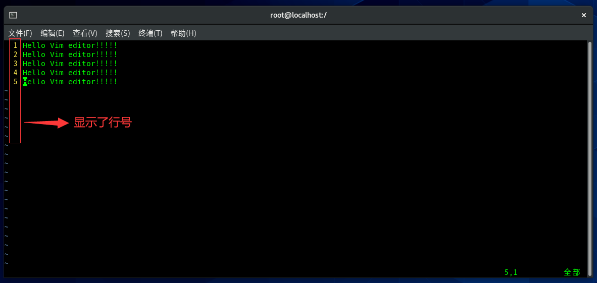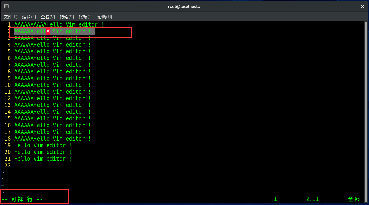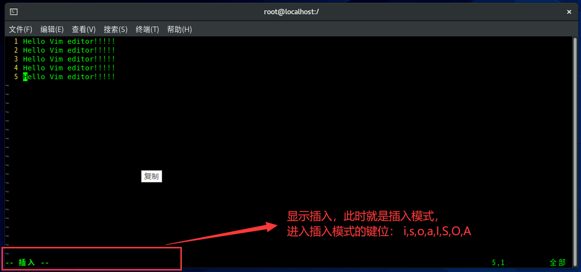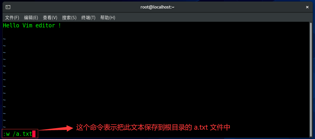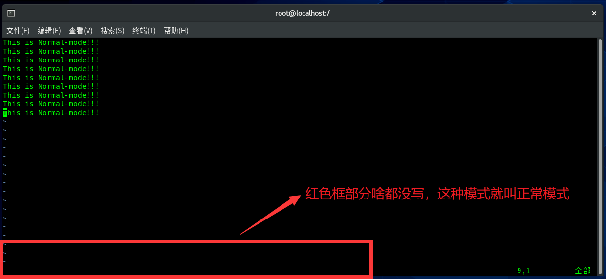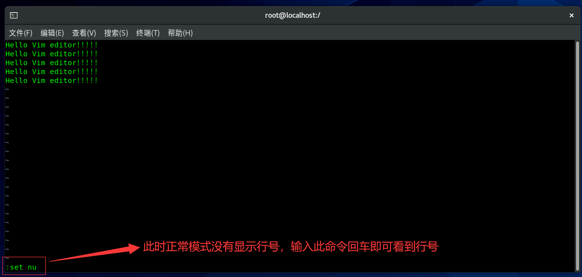 命令模式也叫做末行模式,即在文件最后一行进行操作,如下图: