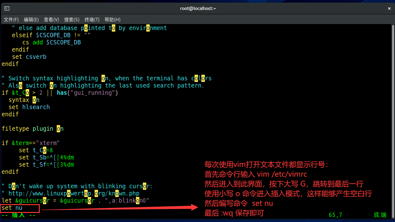 修改 vim 配置文件,使设置永久生效,操作如下图: