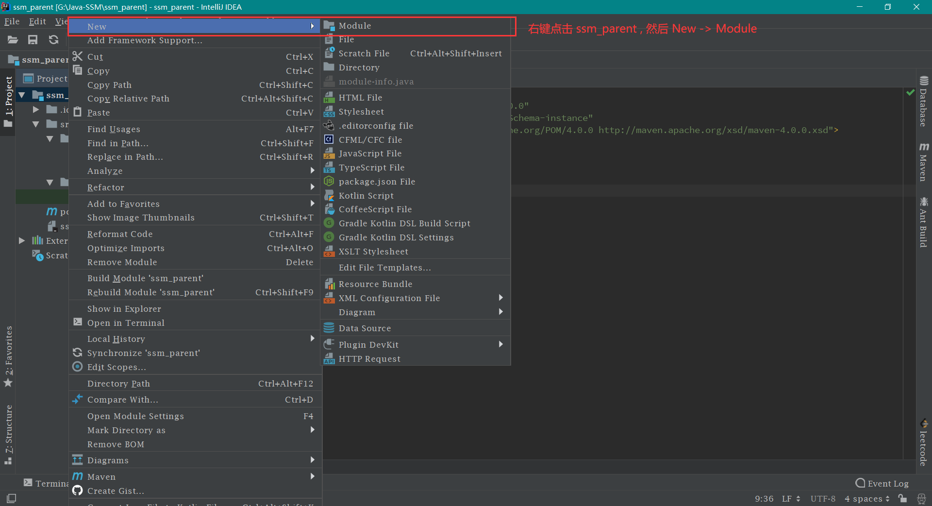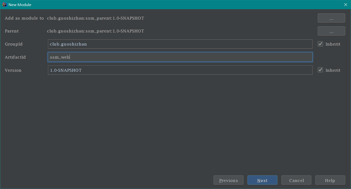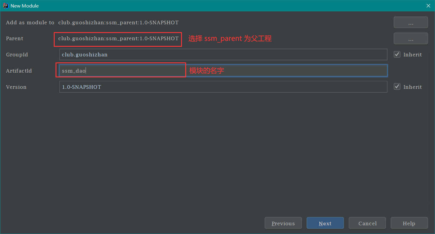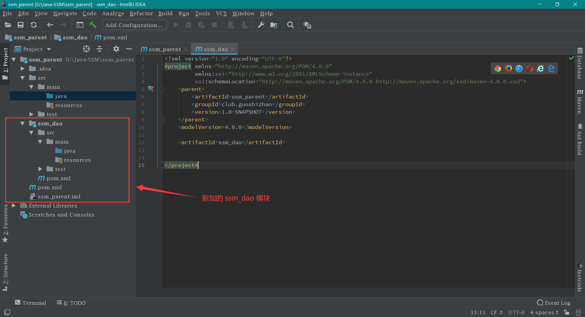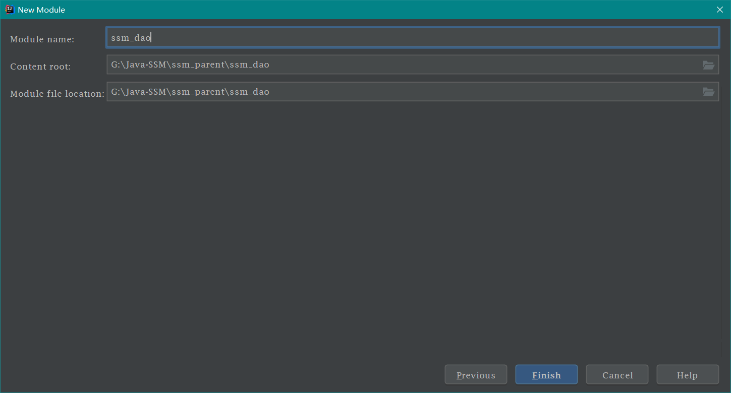创建 ssm_dao 模块 按照下图操作即可,如下: