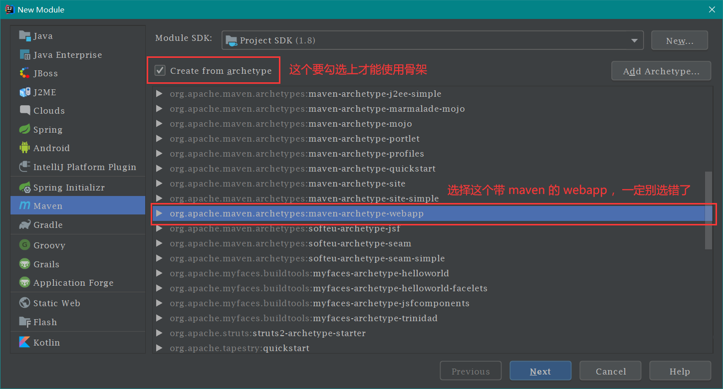 创建 ssm_web 模块 这个模块有点特殊,需要用到骨架 ,创建方式如下图: