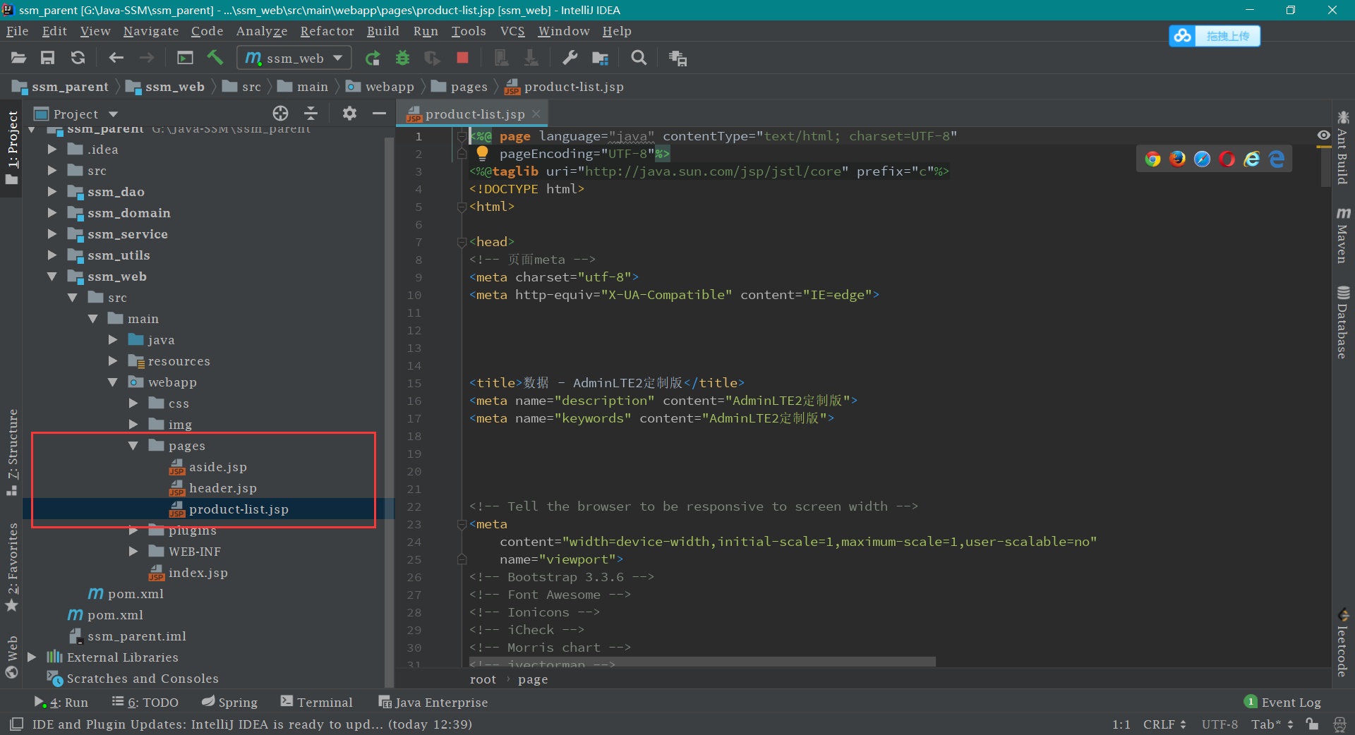 写完这两个工具类,ssm_utils 模块 就不需要再进行其他修改了。接下来我们 编写实体类 。