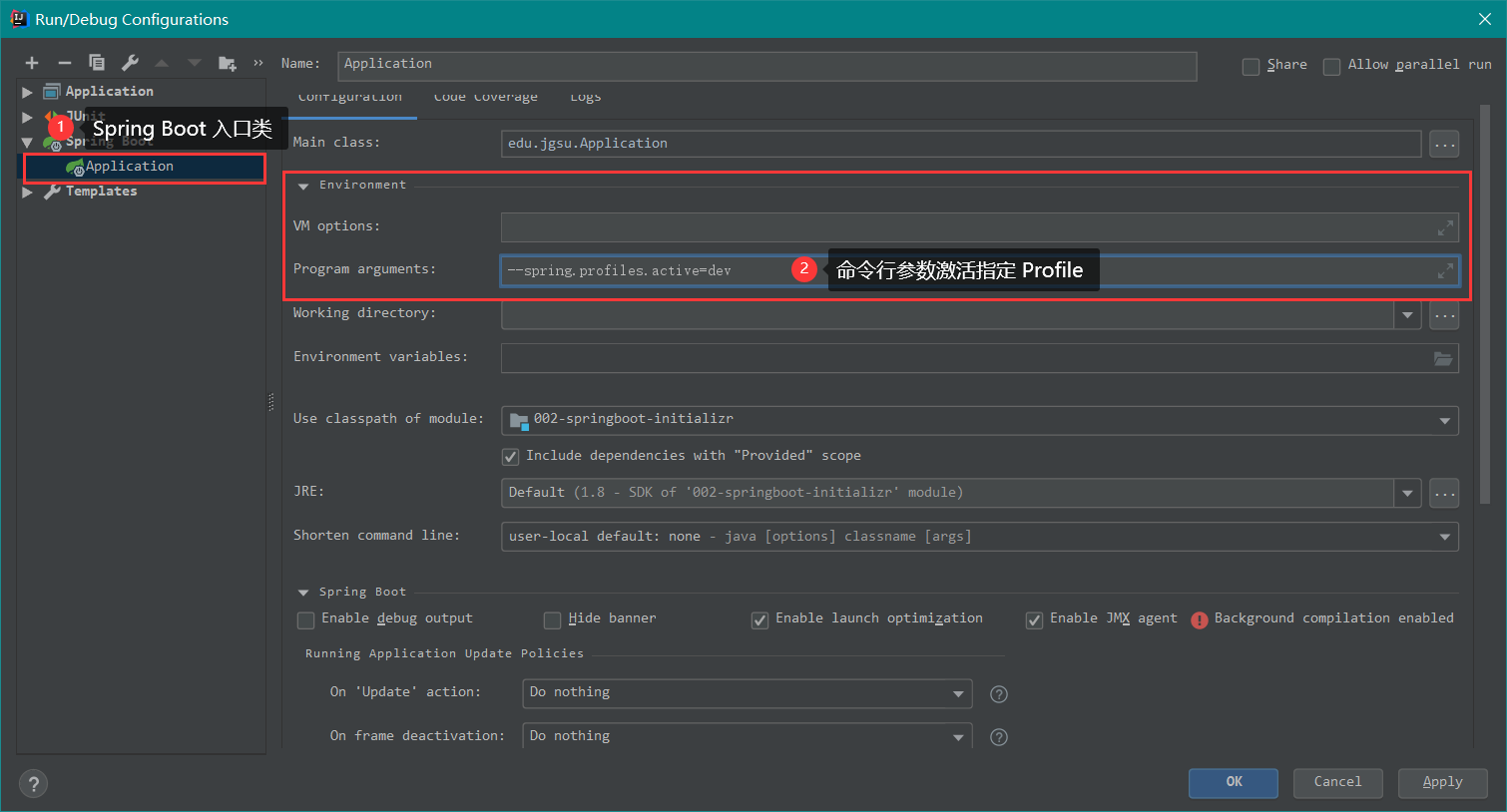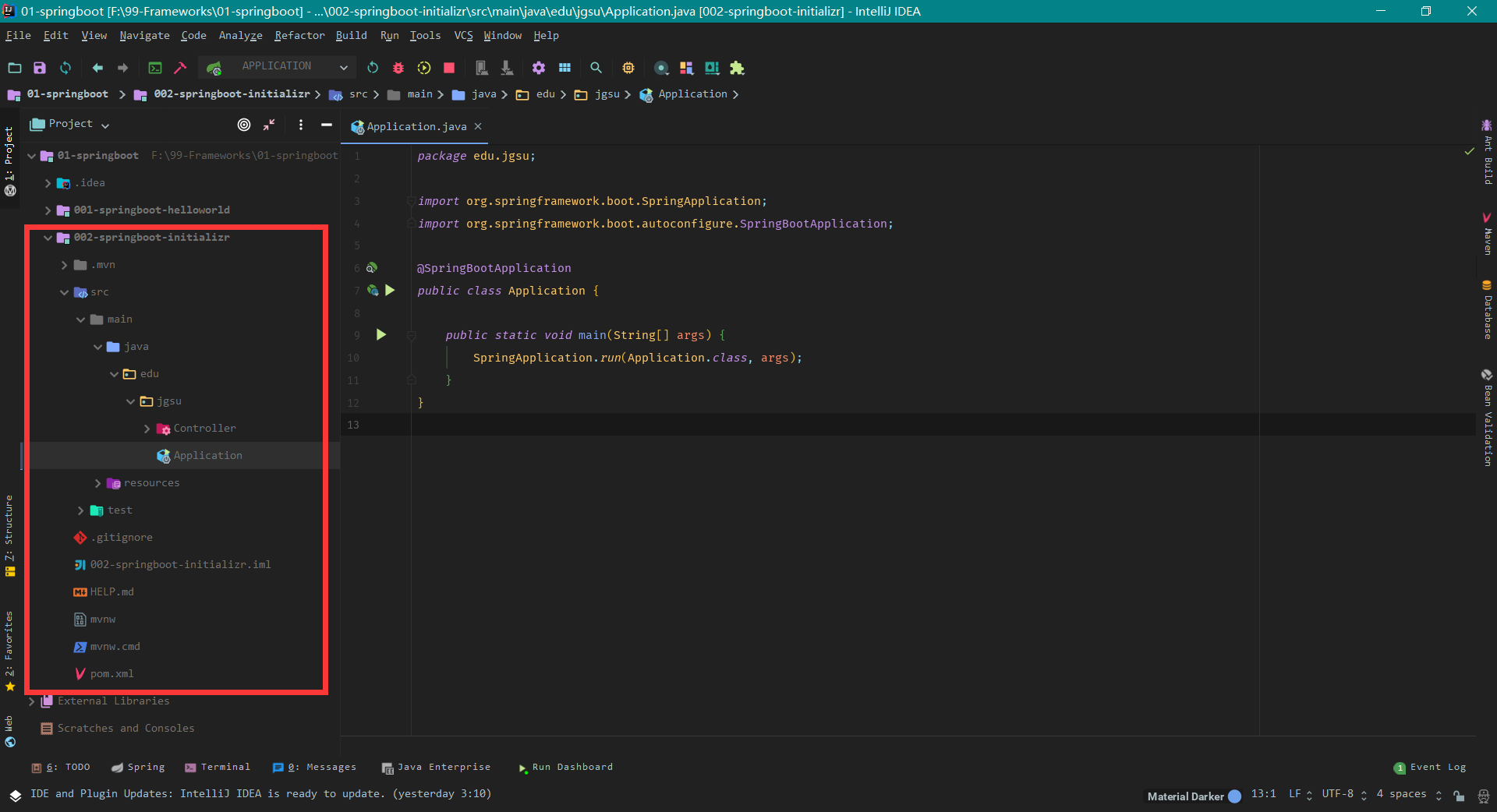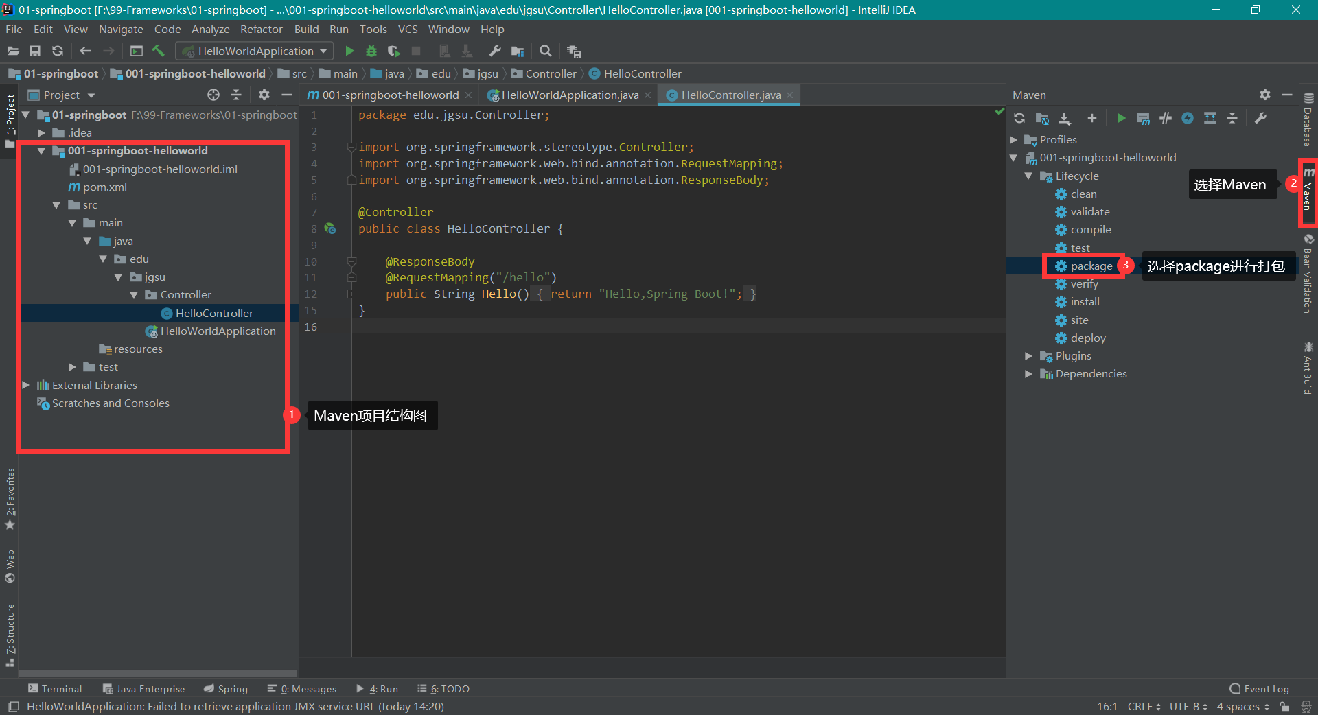 2、HelloWorldApplication 必须放在 jgsu 包里面