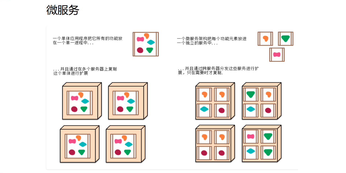 微服务简介 微服务 是一种架构风格,它能够将单一程序开发成一组小型服务的组合,每一个功能元素最终都是一个可独立替换和独立升级的软件单元 。这些小型服务可以使用不同的编程语言以及数据存储技术 ,每一个微服务运行在自己的进程中,使用轻量级机制通信,并通过完全自动化部署机制来独立部署。