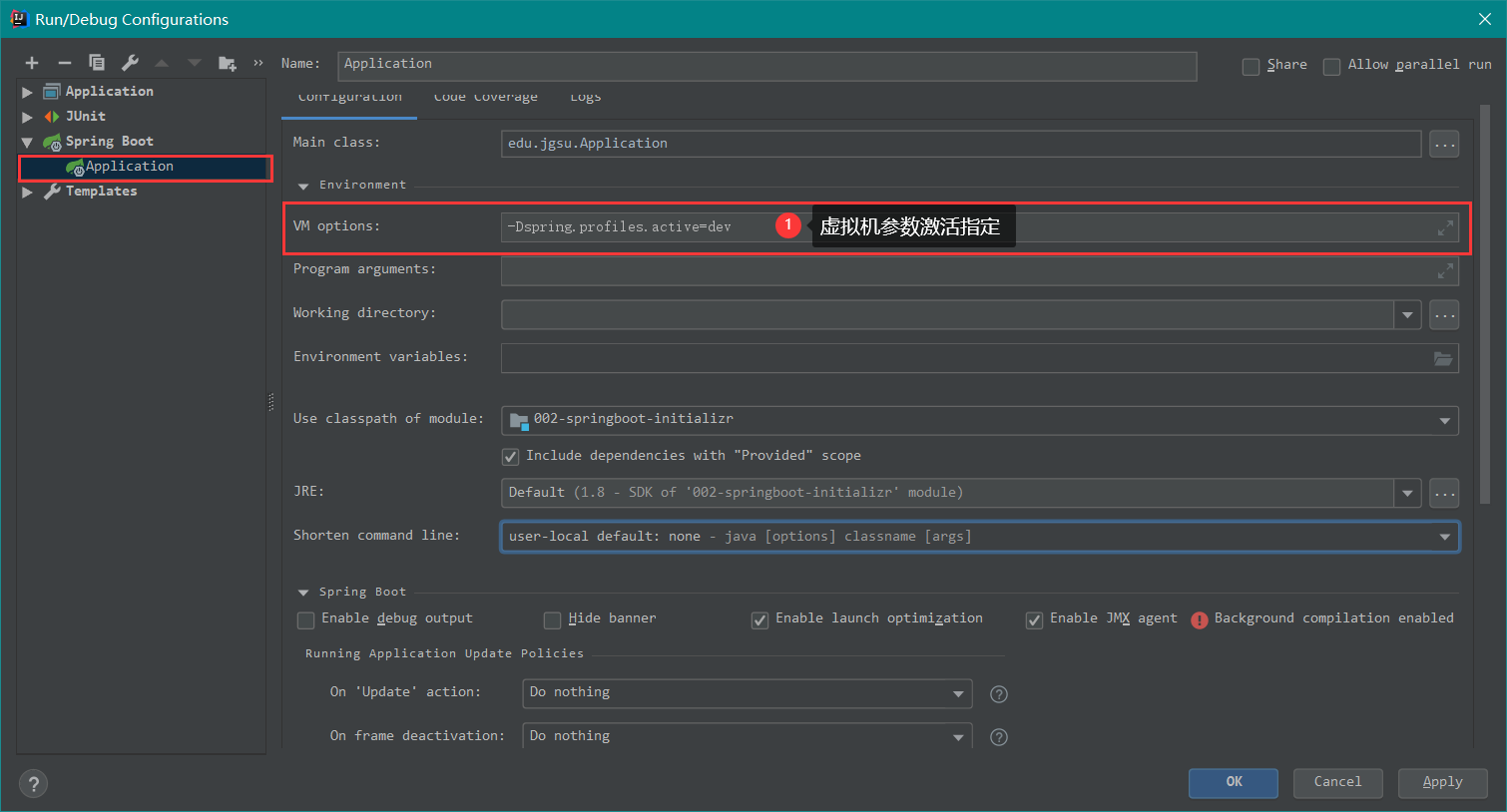 001-springboot-helloworld\src\main\java\edu\jgsu\HelloWorldApplication 1 2 3 4 5 6 7 8 9 10 11 12 13 package edu.jgsu;import org.springframework.boot.SpringApplication;import org.springframework.boot.autoconfigure.SpringBootApplication;@SpringBootApplication public class HelloWorldApplication { public static void main (String[] args) { SpringApplication.run(HelloWorldApplication.class , args ) ; } }