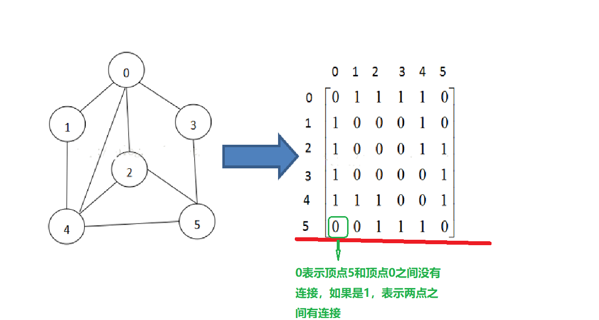 邻接矩阵 邻接矩阵是表示图形中顶点之间相邻关系的矩阵,对于 n 个顶点的图而言,矩阵是的 row 和 col 表示的是 1….n 个点。图与邻接矩阵的关系以及解释如下: