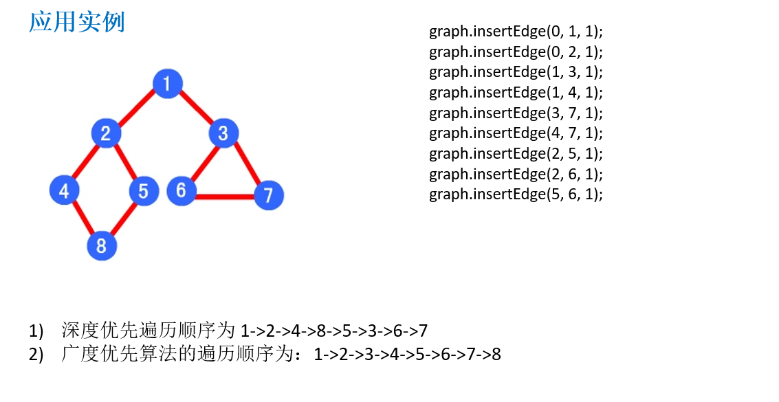 1 2 3 4 5 6 7 8 9 10 11 12 13 14 15 16 17 18 19 20 21 22 23 24 25 26 27 28 29 30 31 32 33 34 35 36 37 38 39 40 41 42 43 44 45 46 47 48 49 50 51 52 53 54 55 56 57 58 59 60 61 62 63 64 65 66 67 68 69 70 71 72 73 74 75 76 77 78 79 80 81 82 83 84 85 86 87 88 89 90 91 92 93 94 95 96 97 98 99 100 101 102 103 104 105 106 107 108 109 110 111 112 113 114 115 116 117 118 119 120 121 122 123 124 125 126 127 128 129 130 131 132 133 134 135 136 137 138 139 140 141 142 143 144 145 146 147 148 149 150 151 152 153 154 155 156 157 158 159 160 161 162 163 164 165 166 167 168 169 170 171 172 173 174 175 176 177 178 179 180 181 182 183 184 185 186 187 188 189 190 191 192 193 194 195 196 197 198 199 200 201 202 203 public class Main { public static void main (String[] args) { int nodeNum = 8 ; String[] str = {"1" , "2" , "3" , "4" , "5" , "6" , "7" , "8" };; Graph graph = new Graph(nodeNum); for (String vertex : str) { graph.insertVertex(vertex); } graph.insertEdge(0 , 1 , 1 ); graph.insertEdge(0 , 2 , 1 ); graph.insertEdge(1 , 3 , 1 ); graph.insertEdge(1 , 4 , 1 ); graph.insertEdge(3 , 7 , 1 ); graph.insertEdge(4 , 7 , 1 ); graph.insertEdge(2 , 5 , 1 ); graph.insertEdge(2 , 6 , 1 ); graph.insertEdge(5 , 6 , 1 ); graph.showGraph(); System.out.println("\n深度优先遍历顺序如下:" ); graph.dfs(); System.out.println("\n广度优先遍历顺序如下:" ); graph.bfs(); } } class Graph { private ArrayList<String> vertexList; private int [][] edges; private int numOfEdges; private boolean [] isVisited; public Graph (int n) { edges = new int [n][n]; vertexList = new ArrayList<String>(); numOfEdges = 0 ; } public void insertVertex (String vertex) { vertexList.add(vertex); } public void insertEdge (int v1, int v2, int weight) { edges[v1][v2] = weight; edges[v2][v1] = weight; numOfEdges++; } public int getNumOfVertex () { return vertexList.size(); } public void showGraph () { for (int [] link : edges) { System.out.println(Arrays.toString(link)); } } public int getNumOfEdges () { return numOfEdges; } public String getValueByIndex (int i) { return vertexList.get(i); } public int getWeight (int v1, int v2) { return edges[v1][v2]; } public int getFirstNeighbor (int index) { for (int i = 0 ; i < vertexList.size(); i++) { if (edges[index][i] > 0 ) { return i; } } return -1 ; } public int getNextNeighbor (int v1, int v2) { for (int i = v2 + 1 ; i < vertexList.size(); i++) { if (edges[v1][v2] > 0 ) { return i; } } return -1 ; } private void dfs (boolean [] isVisited, int i) { if (i == vertexList.size() - 1 ) { System.out.println(getValueByIndex(i)); } else { System.out.print(getValueByIndex(i) + "-->" ); } isVisited[i] = true ; int w = getFirstNeighbor(i); while (w != -1 ) { if (!isVisited[w]) { dfs(isVisited, w); } w = getNextNeighbor(i, w); } } public void dfs () { isVisited = new boolean [vertexList.size()]; for (int i = 0 ; i < getNumOfVertex(); i++) { if (!isVisited[i]) { dfs(isVisited, i); } } } private void bfs (boolean [] isVisited, int i) { int u; int w; LinkedList queue = new LinkedList(); if (i == vertexList.size() - 1 ) { System.out.println(getValueByIndex(i)); } else { System.out.print(getValueByIndex(i) + "-->" ); } isVisited[i] = true ; queue.addLast(i); while (!queue.isEmpty()) { u = (Integer) queue.removeFirst(); w = getFirstNeighbor(u); while (w != -1 ) { if (!isVisited[w]) { if (w == vertexList.size() - 1 ) { System.out.println(getValueByIndex(w)); } else { System.out.print(getValueByIndex(w) + "-->" ); } isVisited[w] = true ; queue.addLast(w); } w = getNextNeighbor(u, w); } } } public void bfs () { isVisited = new boolean [vertexList.size()]; for (int i = 0 ; i < getNumOfVertex(); i++) { if (!isVisited[i]) { bfs(isVisited, i); } } } }