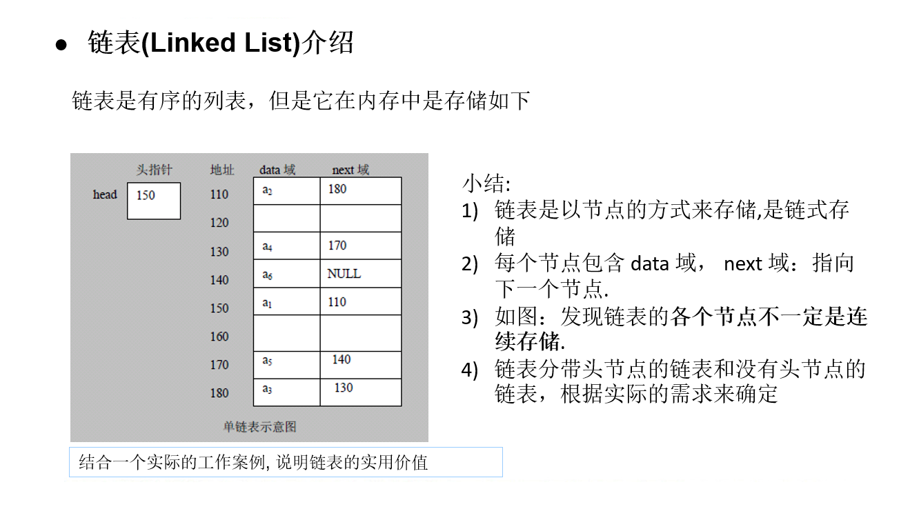 1 2 3 4 5 6 7 8 9 10 11 12 13 14 15 16 17 18 19 20 21 22 23 24 25 26 27 28 29 30 31 32 33 34 35 36 37 38 39 40 41 42 43 44 45 46 47 48 49 50 51 52 53 54 55 56 57 58 59 60 61 62 63 64 65 66 67 68 69 70 71 72 73 74 75 76 77 78 79 80 81 82 83 84 85 86 87 88 89 90 91 92 93 94 95 96 97 98 99 100 101 102 103 104 105 106 107 108 109 110 111 112 113 114 115 116 117 118 119 120 121 122 123 124 125 126 127 128 129 130 131 132 133 134 135 136 137 138 139 public class SingleLinkedListTest { public static void main (String[] args) { HeroNode heroNode1 = new HeroNode(1 , "松江" , "及时雨" ); HeroNode heroNode2 = new HeroNode(2 , "卢俊义" , "玉麒麟" ); HeroNode heroNode3 = new HeroNode(3 , "吴用" , "智多星" ); HeroNode heroNode4 = new HeroNode(4 , "林冲" , "豹子头" ); SingleLinkedList singleLinkedList = new SingleLinkedList(); singleLinkedList.addByOrder(heroNode1); singleLinkedList.addByOrder(heroNode4); singleLinkedList.addByOrder(heroNode3); singleLinkedList.addByOrder(heroNode2); singleLinkedList.addByOrder(heroNode2); singleLinkedList.showList(); } } class SingleLinkedList { private HeroNode head = new HeroNode(0 , "" , "" ); public HeroNode getHead () { return head; } public void add (HeroNode heroNode) { HeroNode temp = head; while (true ) { if (temp.next == null ) { break ; } temp = temp.next; } temp.next = heroNode; } public void addByOrder (HeroNode heroNode) { HeroNode temp = head; boolean flag = false ; while (true ){ if (temp.next == null ){ break ; } if (temp.next.no > heroNode.no){ break ; } else if (temp.next.no == heroNode.no){ flag = true ; break ; } temp = temp.next; } if (flag){ System.out.printf("待插入的英雄编号 %d 已经存在了,不能加入!" , heroNode.no); } else { heroNode.next = temp.next; temp.next = heroNode; } } public void showList () { if (head.next == null ) { System.out.println("链表为空" ); return ; } HeroNode temp = head.next; while (true ) { if (temp == null ) { break ; } System.out.println(temp); temp = temp.next; } } } class HeroNode { public int no; public String name; public String nickname; public HeroNode next; public HeroNode (int no, String name, String nickname) { this .no = no; this .name = name; this .nickname = nickname; } @Override public String toString () { return "HeroNode{" + "no=" + no + ", name='" + name + '\'' + ", nickname='" + nickname + '\'' + '}' ; } }