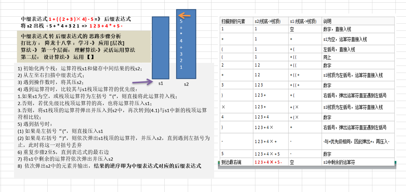 中缀转后缀 中缀表达式 转化为 后缀表达式 ,难度有点大,详情如下图: