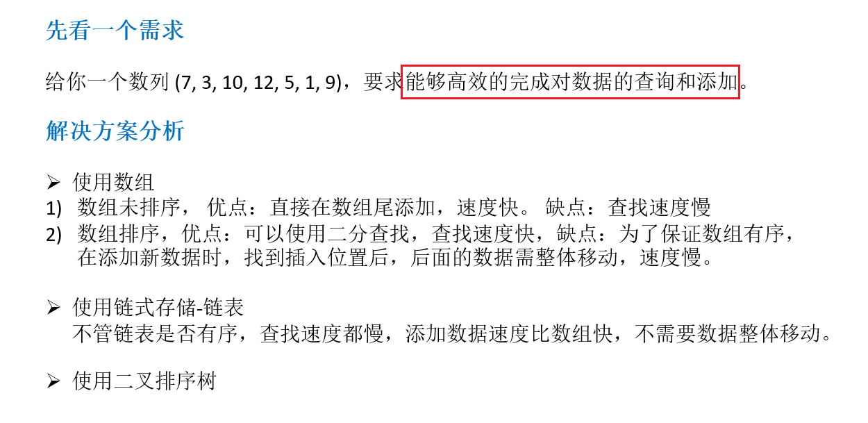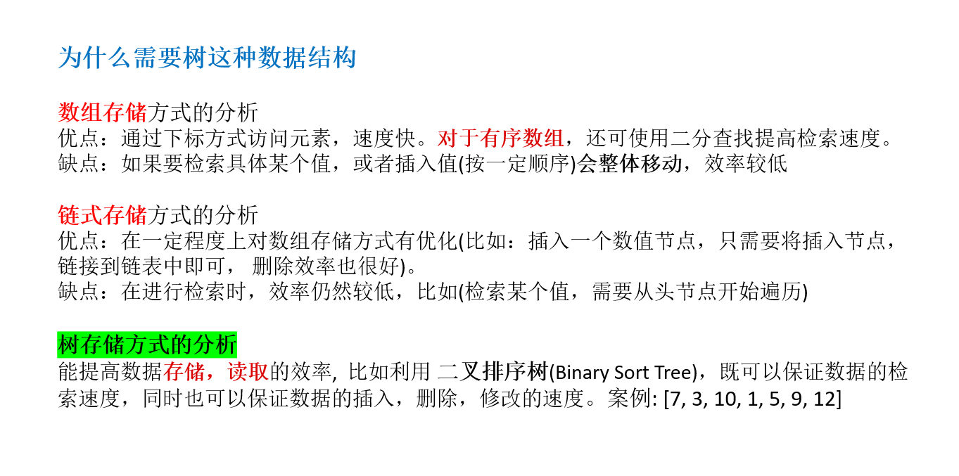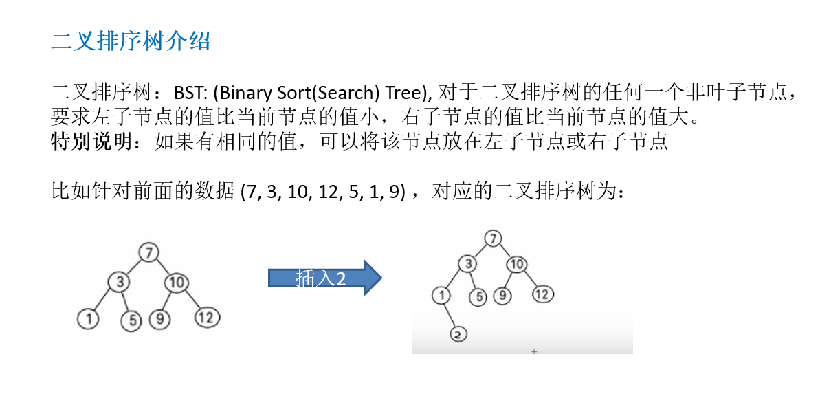 二叉排序树(BST) 基本介绍 二叉排序树 整合了 数组 和 链表 的优点 ,从而对数据的 CRUD 操作更为高效。详情如下: