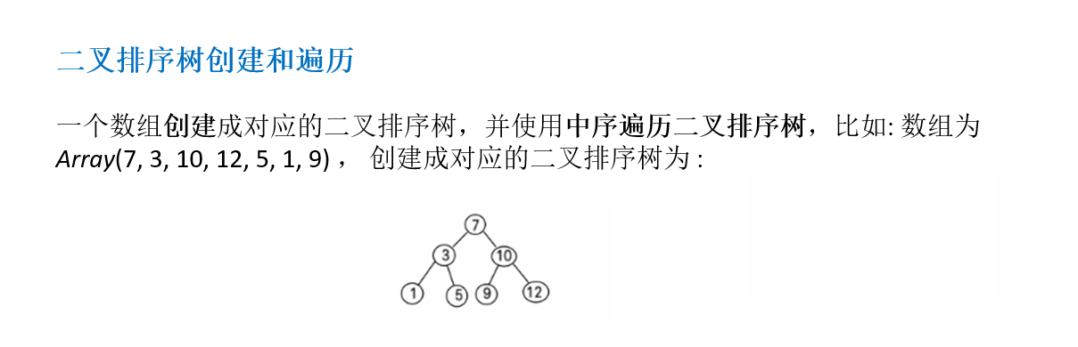 1 2 3 4 5 6 7 8 9 10 11 12 13 14 15 16 17 18 19 20 21 22 23 24 25 26 27 28 29 30 31 32 33 34 35 36 37 38 39 40 41 42 43 44 45 46 47 48 49 50 51 52 53 54 55 56 57 58 59 60 61 62 63 64 65 66 67 68 69 70 71 72 73 74 75 76 77 78 79 80 81 82 83 84 85 86 87 88 89 90 91 92 93 94 95 96 97 98 99 100 101 102 103 104 105 106 107 public class BinarySortTreeTest { public static void main (String[] args) { int [] arr = {7 , 3 , 10 , 12 , 5 , 1 , 9 }; BinarySortTree binarySortTree = new BinarySortTree(); for (int i = 0 ; i < arr.length; i++) { binarySortTree.add(new Node(arr[i])); } binarySortTree.infixOrder(); } } class BinarySortTree { private Node root; public void add (Node node) { if (root == null ) { root = node; } else { root.add(node); } } public void infixOrder () { if (root != null ) { root.infixOrder(); } else { System.out.println("The Binary Sort Tree is empty, so it can not be traversal!!!" ); } } } class Node { int value; Node left; Node right; public Node (int value) { this .value = value; } public void add (Node node) { if (node == null ) { return ; } if (node.value < this .value) { if (this .left == null ) { this .left = node; } else { this .left.add(node); } } else { if (this .right == null ) { this .right = node; } else { this .right.add(node); } } } @Override public String toString () { return "Node{" + "value=" + value + '}' ; } public void infixOrder () { if (this .left != null ) { this .left.infixOrder(); } System.out.println(this ); if (this .right != null ) { this .right.infixOrder(); } } }