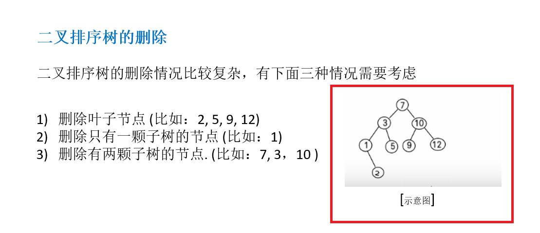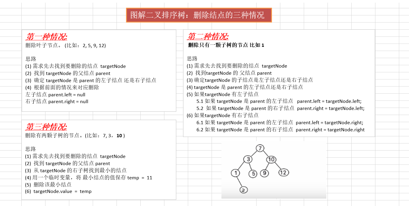 删除节点 二叉排序树 的 删除节点的情况和思路分析 如下图: