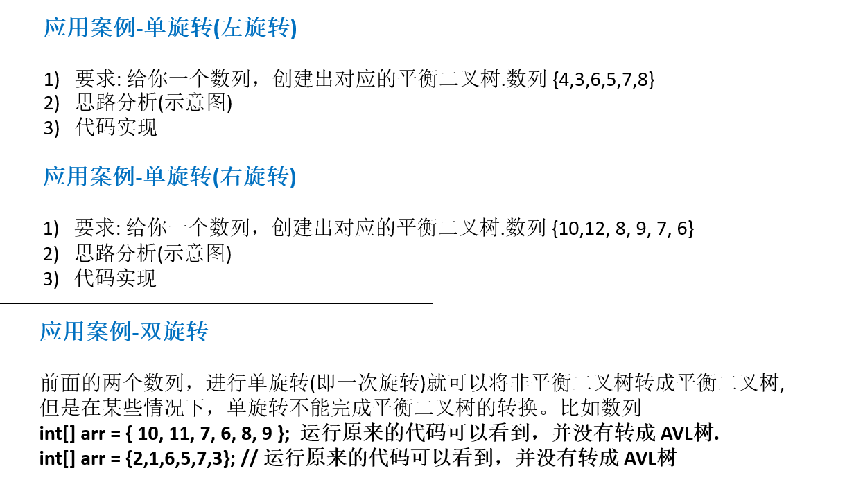创建和遍历 以下是 创建平衡二叉树过程中需要用到的三种解决方案 ,如下图: