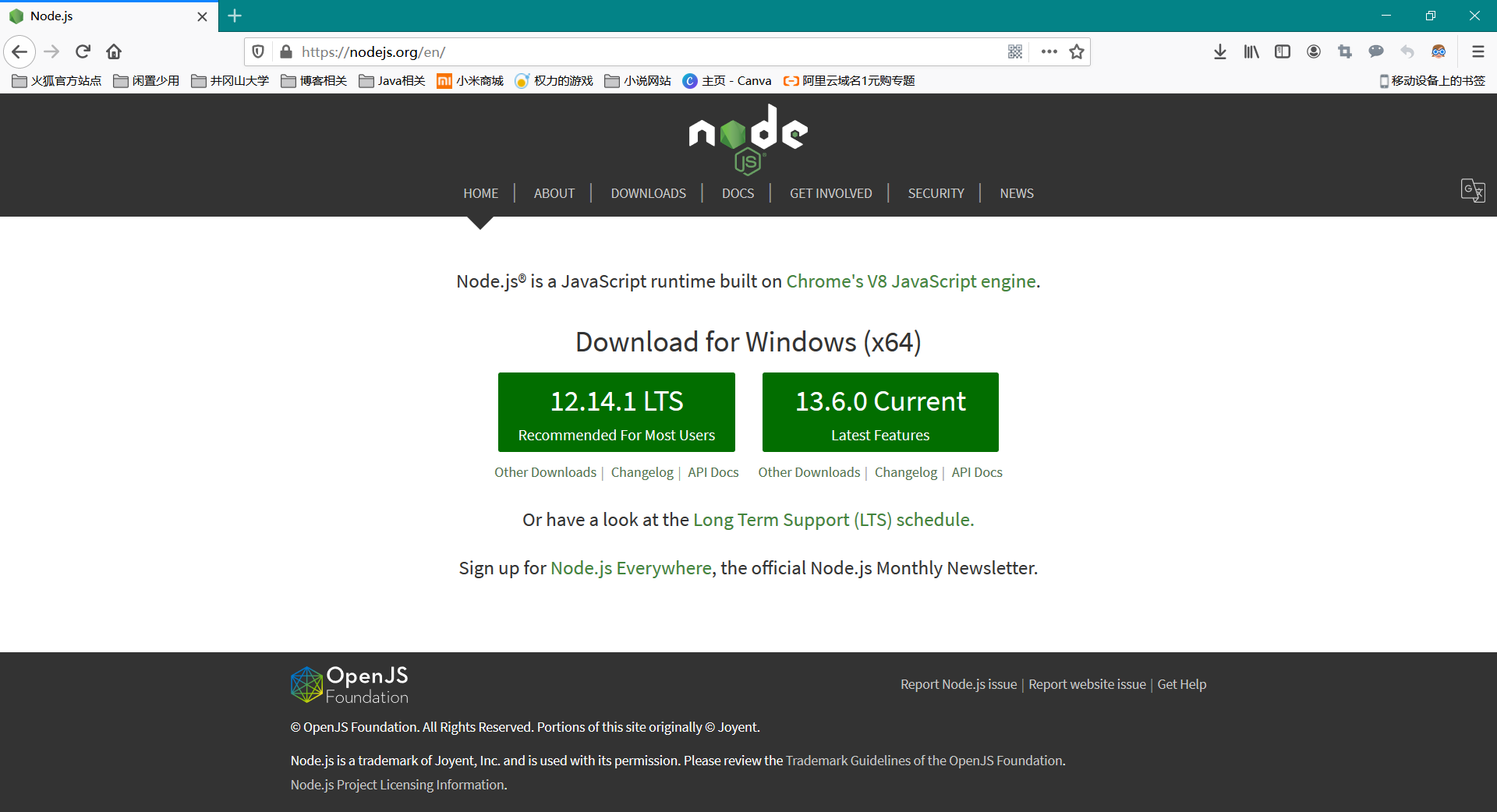 下载 NodeJs 软件
