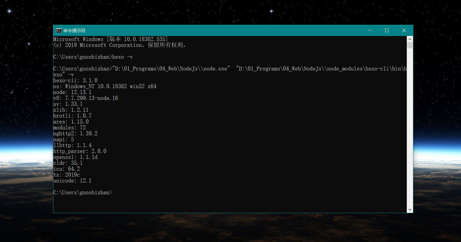 1 | hexo -v |
