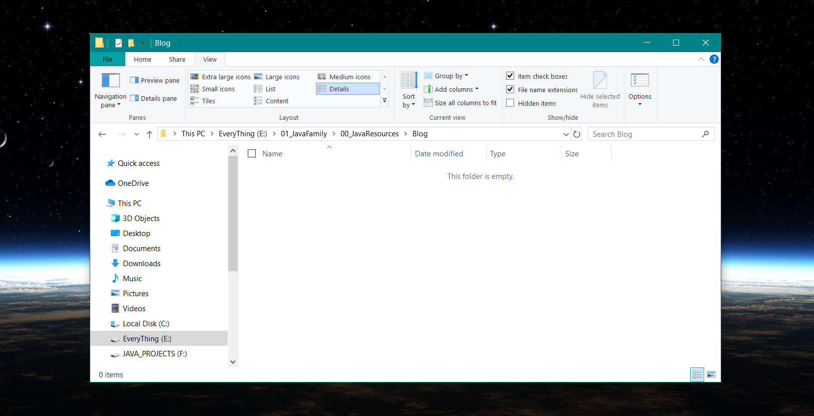 在自己的任何一个盘符上创建一个文件夹,名字随意,建议为 Blog,这个目录必须为空,不要安装或者添加其他的文件,否则会报错。在以后的操作中,都是基于这个目录操作的。如果其间出现问题,都可以把这个目录下的所有文件删除掉,再重新来过。至此,第一阶段结束。以下是我的 Blog 目录演示: