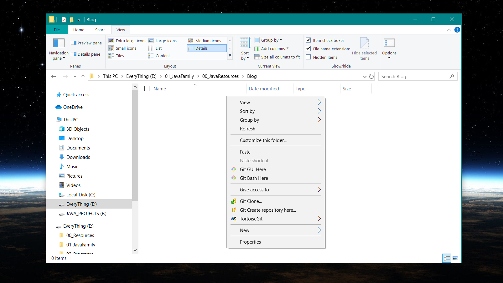 进入到 Blog 目录,点击鼠标右键,选择 Git Bash Here,如下图所示: