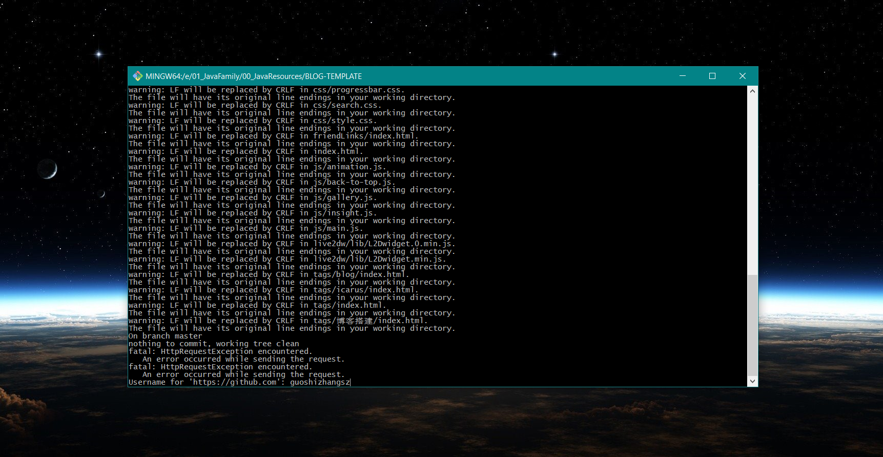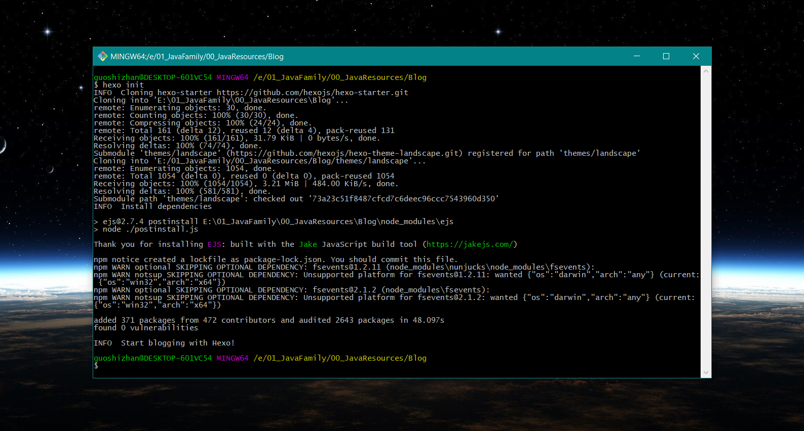 在 blog 目录下打开 Git 窗口,输入以下命令: