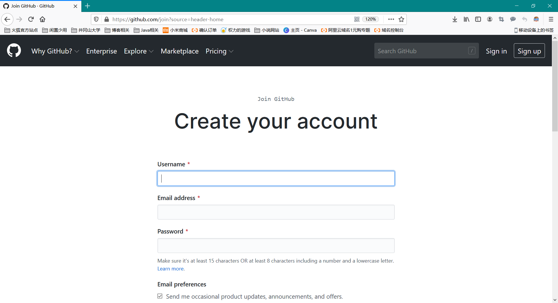 登录 Github 官网,点击右上角 Sign up,然后出现如下注册界面: