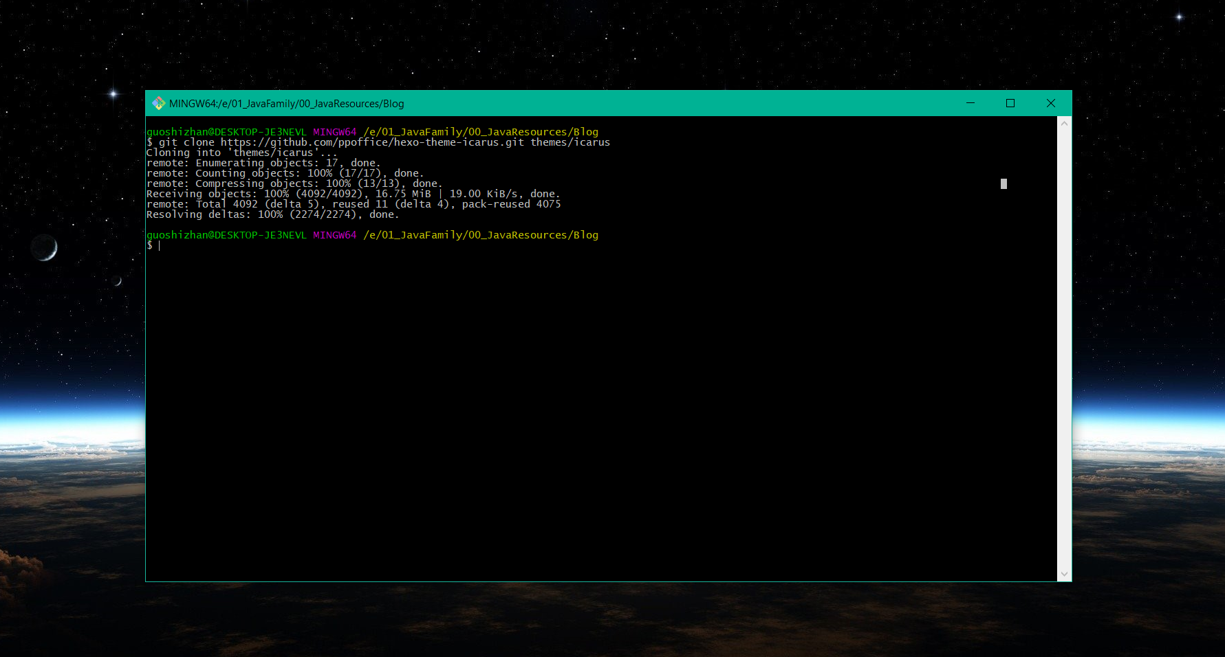 1 | git clone https://github.com/ppoffice/hexo-theme-icarus.git themes/icarus |