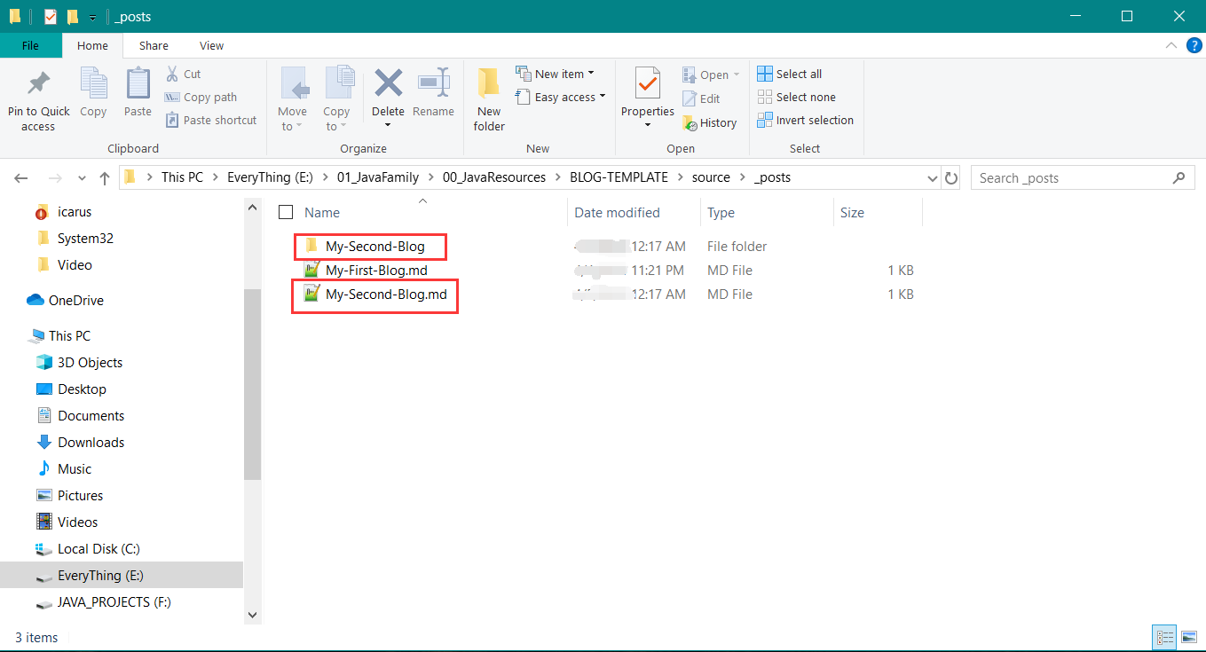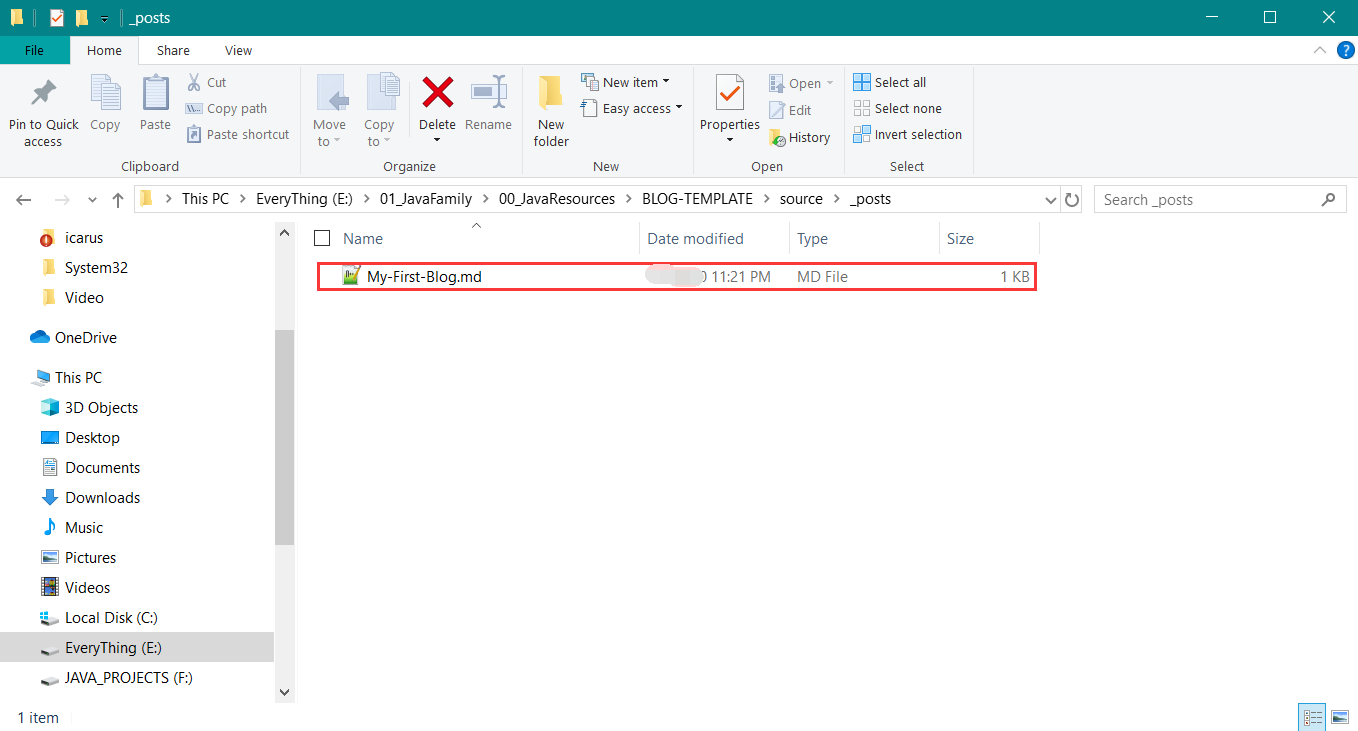 文章目录在Blog/source/_posts下,这个时候只有一个My-First-Blog.md文件,如下图: