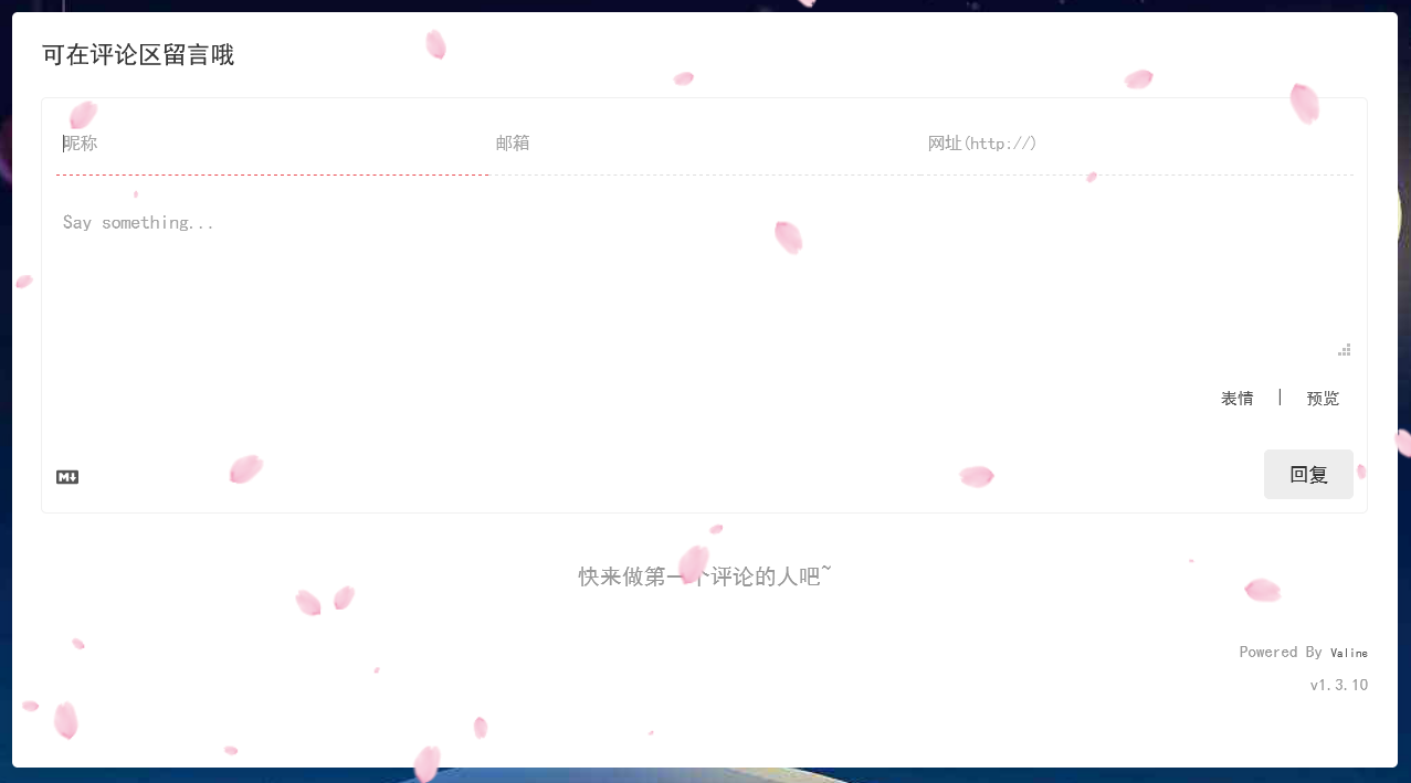 然后 hexo clean,hexo g,hexo s 即可。若具有点击效果和落花背景,那么你已经成功了。如下图: