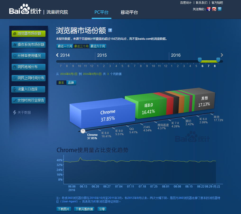 查看浏览器占有的市场份额(知晓)