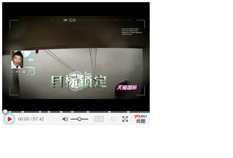 1 | <embed src="http://player.youku.com/player.php/sid/XMTI4MzM2MDIwOA==/v.swf" allowFullScreen="true" quality="high" width="480" height="400" align="middle" allowScriptAccess="always" type="application/x-shockwave-flash"></embed> |