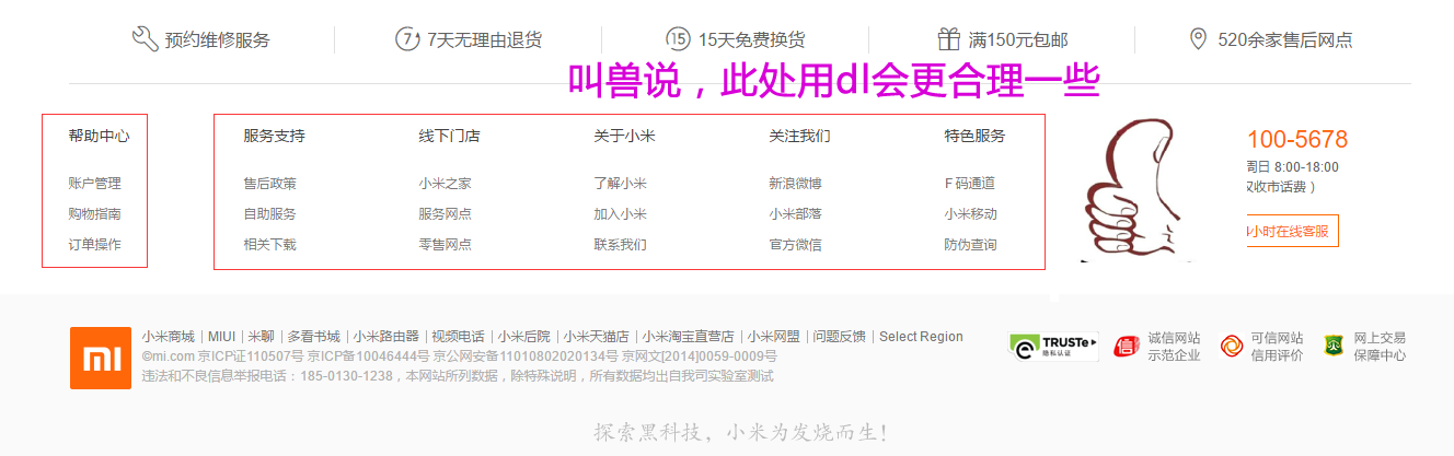 <footer> 语义: 定义 页面底部 页脚</footer>